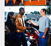 While we were waiting for my new battery, the salesman came over to me and said, "Ya know, when you are out there riding on a beautiful new bike, you can't help but be really happy. Did you know that you make more money when you are happy? Don't you think you'd be really happy on one of our new motorcycles sitting here in our showroom. Did you see our sign? It's at zero interest right now!"