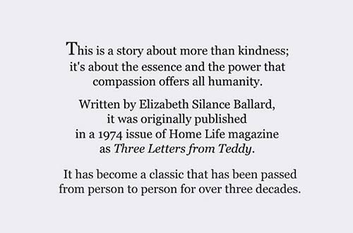 The impact of what Teddy says to Miss Thompson at an intensely vulnerable moment, instantly connects us with what's really important in any given situation. We all know that, throughout time, stories are very powerful for opening hearts and minds, as well as igniting momentum for synergistic cultural changes that are self-sustaining.