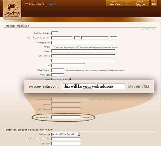 Here's how simple it is to get your own website address when you are paying for your membership: