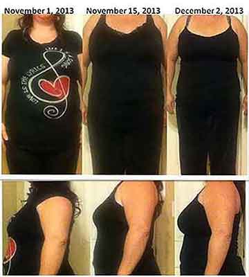 "I have lost a total of 10 lbs and I'm down 11 inches. The first 2 weeks of the diet, I was walking every day and eating fairly healthy and drinking 1 cup of Burn & control a day. The 3rd week, I got sick ate hot soup & drank hot fluids and the 4th week I didn't eat well due to Thanksgiving. In the photos, I am not wearing any spanx or support at all LOL. The 3rd and 4th week I did up my coffee consumption to 2 of the Burn & Control a day. I'm amazed to see how incredible my results have been, and looking forward to next month's results!" ~Alesia |