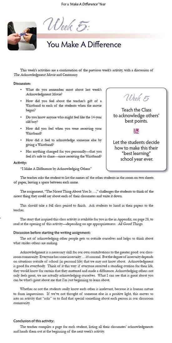 And now, here's the sampler of WEEK 5 of my 9-Week Make A Difference School Curriculum so you can see just how DOABLE this is!
