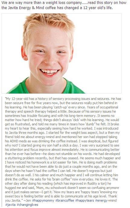 It was Howard Thruman, a Theologian who once said, "Don't ask what the world needs; ask what makes you come alive, and go do it. Because what the world needs is more people who have come alive." What makes me come alive over the past several months are three health products that have answered prayers above and beyond the prayers I didn't even know how to pray for. AND Javita Energy+Mind Coffee which is infused with potent blend of green tea, gotu kola and bacopa monnieri herbal extracts to provide maximum health benefits. It is bringing calm focus and energy to the excessively busy minds of the world who are expending a lot of unproductive energy going nowhere fast. I've been in business for myself for 20+ years, and not once have I come across a product - other than my own movies, books, programs and coaching offerings - that I would even consider getting behind, let alone be compelled to want to talk about 24/7 ... Why am I so jazzed about this? Because Javita's use of herbal combinations that they've infused in the coffee and tea creates a nutraceutical synergism in the body that is bringing about health benefits that are making a huge difference in so many people's lives. These are REAL people - just like you and me - who are getting REAL RESULTS. Today, I want to share just a few of the most recent prayers being answered with Javita Coffee & Tea that have deeply touched my heart - given that my professional career started out in education and my business was born from teaching my systems for helping at-risk children and adults become highly productive and successful and create a safe community with their peers. In case you did not know the most recent statistics on ADHD here they are: ![]() Just IN! ![]() To ORDER Energy+Mind Coffee today go to: MakeADifferenceCafe.com Reaching out to make a world of difference ... PS ... While you are investigating these products, make sure to click on the link that says 3&FREE program for getting you coffee and/or tea free each month. |